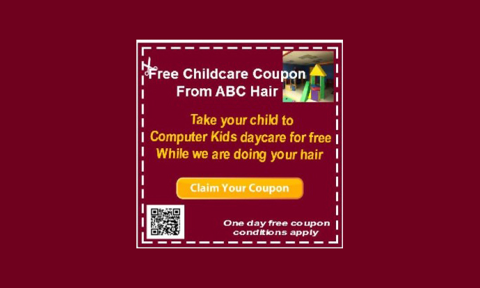 This coupon entitles you to one-day free child care at Computer Kids Daycare.